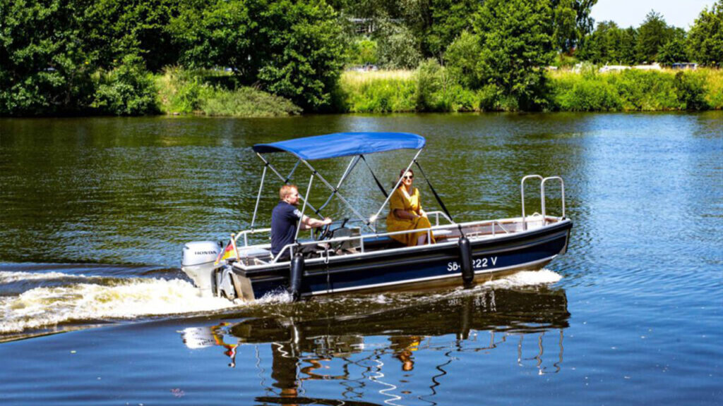 Genieße eine unvergessliche Zeit auf der Saar. Im Bootsverleih Saar in Merzig und dem Bistro SaaRiviera erlebst du Erholung pur. Verbringe deine Freizeit vermehrt auf dem Wasser und tauche in die einzigartige schöne Naturlandschaft der Saar ein. Einsteigen und es kann losgehen mit dem führerscheinfreien Motorboot für bis 6 Personen.