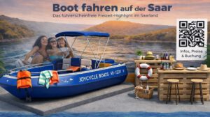 Ein Tag auf der Saar ist wie ein kleiner Urlaub. Unser neues Joyrider.Boat Premium für bis 10 Personen ist ideal für entspannte Ausflüge mit Familien, Freunden oder als Gruppe – einfach fahren, genießen und abschalten.